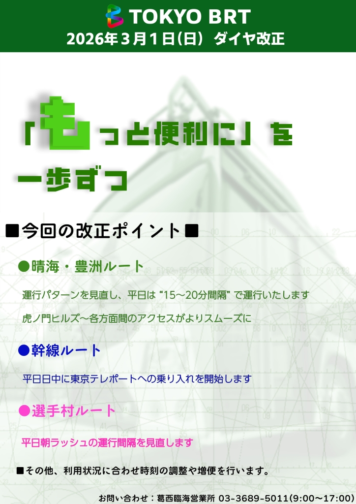 この度、東京BRTでは2026年3月1日よりダイヤ改正を行います。